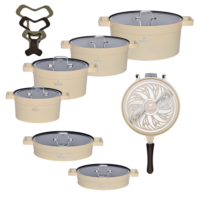 سرویس قابلمه 18پارچه راکلند مدل تمیس برای کسانی که به دنبال ظروفی کامل و با کیفیت میگردند گزینه عالی است. اگر برای جهیزیه خود به دنبال بهترین سرویس قابلمه و با قیمت مناسب هستید. ولی چندان وقت کافی برای خرید ظروف به صورت تکی را ندارید. ما به شما این محصول زیبا را معرفی میکنیم.طراحی دربهای آن بهروز و بسیار جذاب میباشد