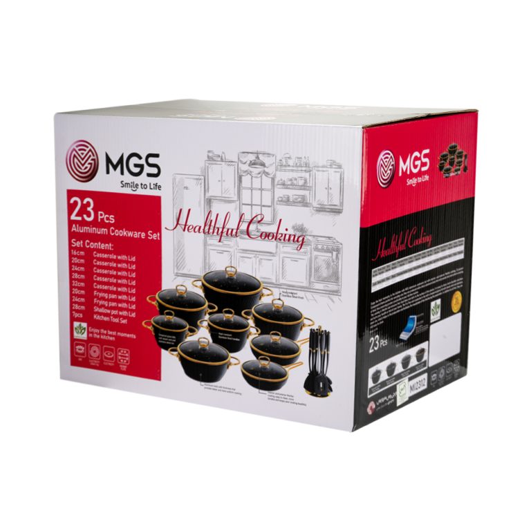 این سرویس قابلمه 23 پارچه طرح ماینز شامل چهار قابلمه و چهار درب پیرکس بعلاوه دو تابه تک دسته همراه درب است. جنس روکش این ست، گرانیت نچسب است. نحوه ساخت این سرویس قابلمه 23 پارچه فورج و دستههای آن به بدنه متصل شده است.
