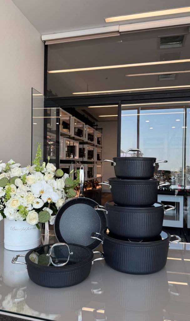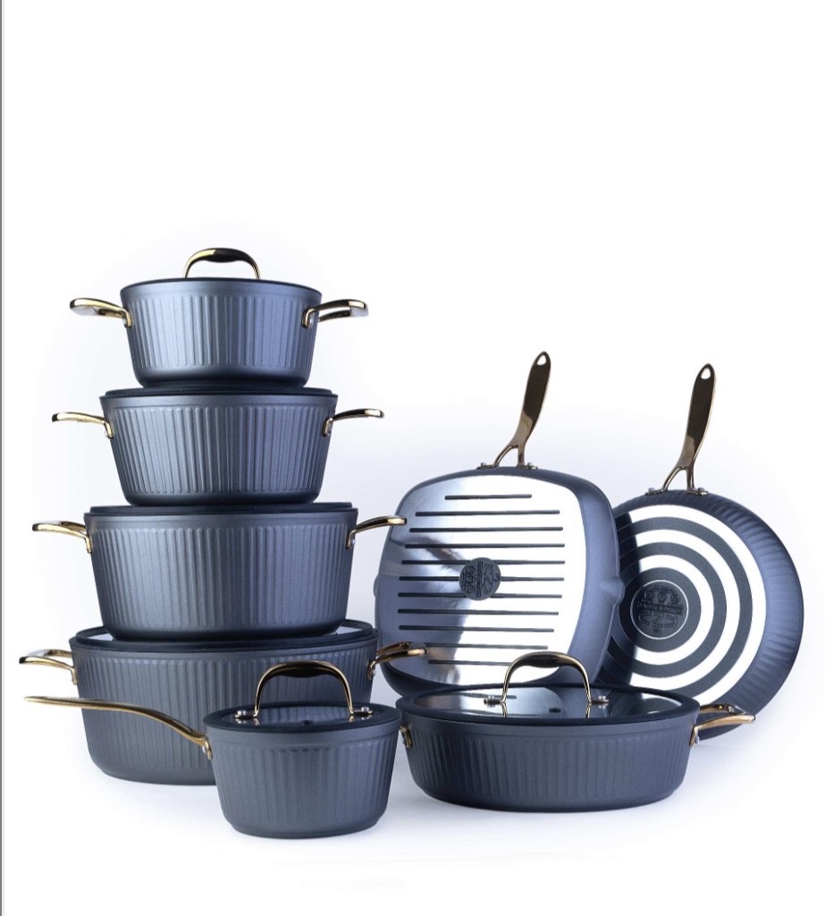 سرویس قابلمه آلما ۱۴پارچه با درب سيليكونى دستگیره طلایی ای