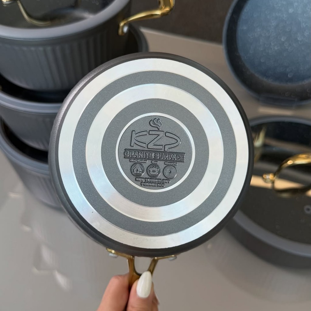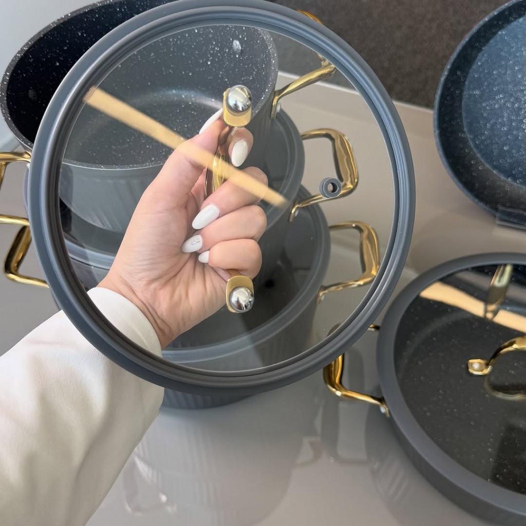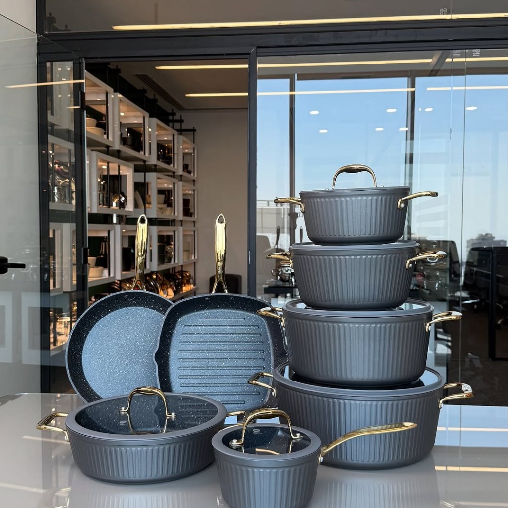 سرویس قابلمه آلما ۱۴پارچه با درب سيليكونى دستگیره طلایی