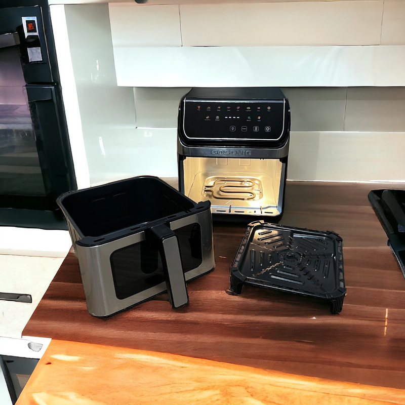 سرخکن بدون روغن گوسونیک مدل 958 با طراحی مدرن و رنگ مشکیسیلور، از بدنهای مقاوم متشکل از استیل ضدزنگ و پلاستیک فشرده ساخته شده است که ضمن برخورداری از دوام بالا، نمایی شیک و حرفهای به فضای آشپزخانه میبخشد. این دستگاه به دو المنت حرارتی مجزا مجهز شده که المنت بالایی با توان ۱۵۰۰ وات و المنت پایینی با توان ۵۰۰ وات، مجموعاً قدرتی معادل ۲۰۰۰ وات را برای پخت مؤثر و یکنواخت انواع غذاها فراهم میکنند. مخزن داخلی و سینی پخت از جنس آلومینیوم با پوشش نچسب سرامیکی تولید شدهاند و قابلیت پخت همزمان در دو طبقه مجزا را فراهم میسازند. ظرفیت ۸ لیتری دستگاه، پاسخگوی نیاز خانوادههای متوسط و پرجمعیت بوده و امکان تهیه حجم قابل توجهی از غذا را در یک نوبت فراهم میکند. این مدل به یک نمایشگر دیجیتالی رنگی مجهز است که دسترسی سریع و آسان به ۱۲ برنامه پخت متنوع را ممکن میسازد. همچنین وجود تایمر قابل تنظیم تا ۶۰ دقیقه به همراه سیستم قطعکن خودکار، ایمنی و دقت عملکرد دستگاه را افزایش داده است. سرخکن بدون روغن گوسونیک مدل 958 از جمله محصولات جدید و قدرتمند این برند بهشمار میرود که با بهرهگیری از فناوری روز، طراحی کاربردی و ساختار مقاوم، تجربهای سالم و پیشرفته از آشپزی را برای کاربران فراهم میسازد.
