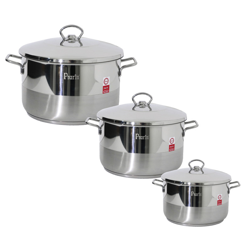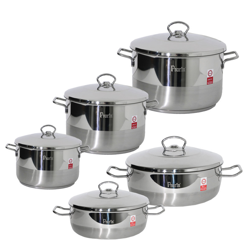 هر آشپز ماهر و نیمهماهری نیاز به قابلمه و تابهای دارد که بتواند به کمک آنها غذاهای مورد نظر خود را به بهترین شکل پخت کند. بهترین گزینه برای تهیه قابلمه و تابه تهیه سرویس قابلمه است. چون این سرویسها چند قابلمه و تابه در ابعاد مختلف مورد نیاز را در یک بستهبندی با قیمت مناسب ارائه میدهد و فضای کمتری را در آشپزخانه اشغال میکنند.سرویس پخت و پز 10 پارچه پرارین از محصولات بسیار کاربردی و پرطرفدار بوده و در کنار دارا بودن بالاترین استانداردهای لازم برای ظروف پخت و پز دارای طراحی بسیار زیبا و چشم گیر و منحصر بفردی می باشد.کلیه قطعات این سرویس از استیل ضد زنگ با آلیاژ 18/10 کروم-نیکل ساخته شده است که در نوع خود سالم ترین ماده اولیه ایست که می توان در ساخت ظروف پخت و پز استفاده کرد.