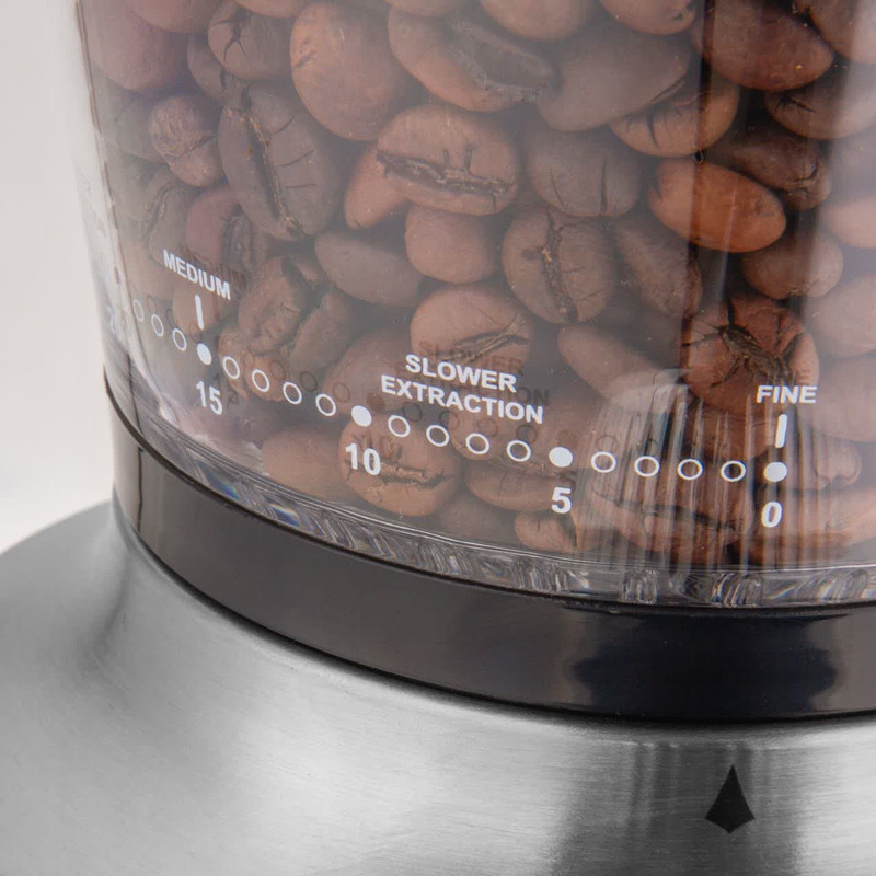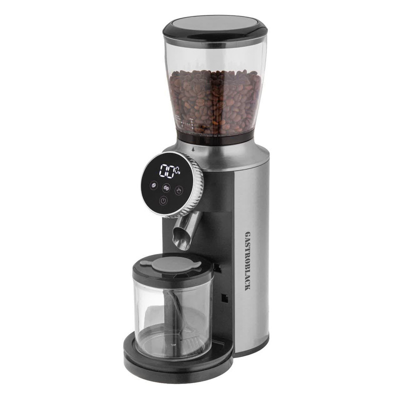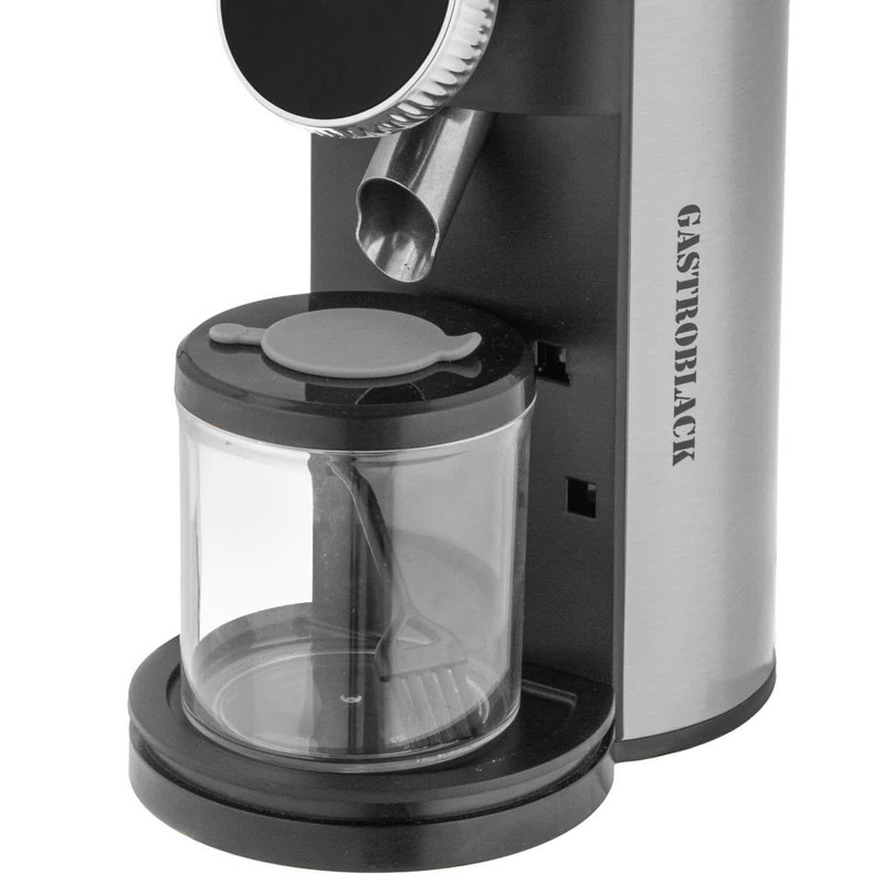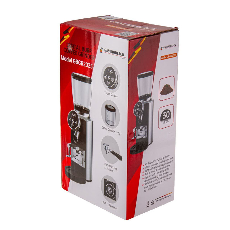 آسیاب قهوه گاستروبلک مدل GBGR2025 تحولی جدی در تولید آسیاب در این شرکت است زیرا تمام مشخصات مورد نیاز برای یک آسیاب خوب را داراست. در این آسیاب تیغه ی مخروطی طراحی شده است. تیغه های مخروطی بیشترین دقت در سرعت های پایین را دارا هستند و خصوصا در مقیاس های خانگی قهوه را داغ نکرده و از شروع آسیاب تا انتهای آن سایز پودر یکسان است همچنین حداقل صدای مورد انتظار از یک آسیاب را از آن میتوانید بشنوید. نکته بعد پرتابل بودن تیغه ی مدور این اسیاب و امکان خارج کردن آن و برای تمیز کردن آن است، به این صورت که با باز کردن هاپر (مخزن قهوه) با کشیدن دسته ی متصل به تیغه ی مدور که دور تیغه ی مخروطی قرار دارد، به راحتی میتوانید آنرا جدا کنید. این قابلیت پاکسازی آسیاب را بسیار ساده میکند و نیازی به باز کردن دستگاه برای تمیز کردن تیغه ها نیست. خصوصیت مهم دیگر این آسیاب، صفحه نمایش و برد ۴ دکمه، جهت تنظیم تایم آسیاب به صورت برنامه ریزی شده جلوی دستگاه تعبیه شده تا از این دستگاه به صورت اتوماتیک بتوانید استفاده کنید. این دستگاه مخزنی ۳۲۰ گرمی و بدنه و صفحه برد و دکمه های استیل ، نمایشگر LED، لرزشگیر قوی دارد و صدای آن بسیار کم بوده و قدرت موتور آن 600 وات است. جنس کاسه این آسیاب قهوه استیل ضد زنگ است و در اثر شستشو و استفاده مداوم دچار تغییر رنگ و زنگزدگی نمیشود. شما میتوانید با این دستگاه میوههای خشک را هم آسیاب کنید و در مواقع لازم به راحتی از آنها استفاده کنید. در یک دستگاه آسیاب تیغهها نقش مهمی را ایفا میکنند که تیغههای این محصول ۲ پره و همانند کاسه آن از استیل ضدزنگ است که دوام آن را به مراتب بالا میبرد.