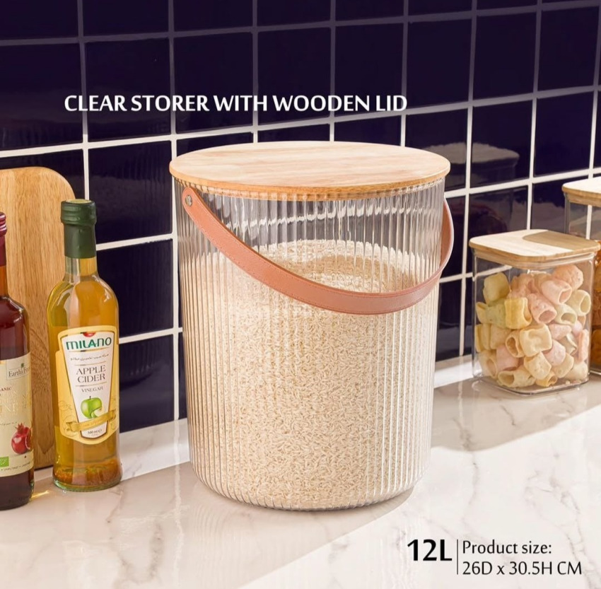 سطل برنج اکرولیک با درب چوبی لیمون 12 لیتر