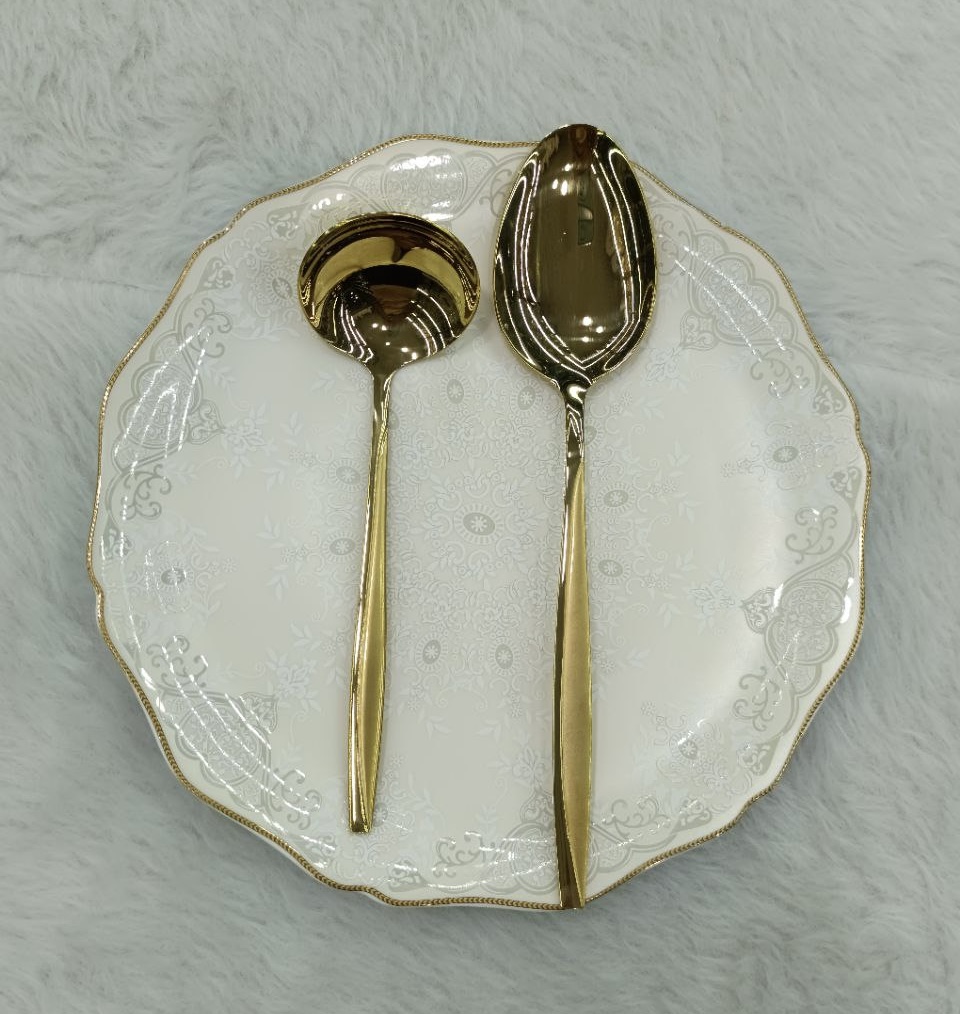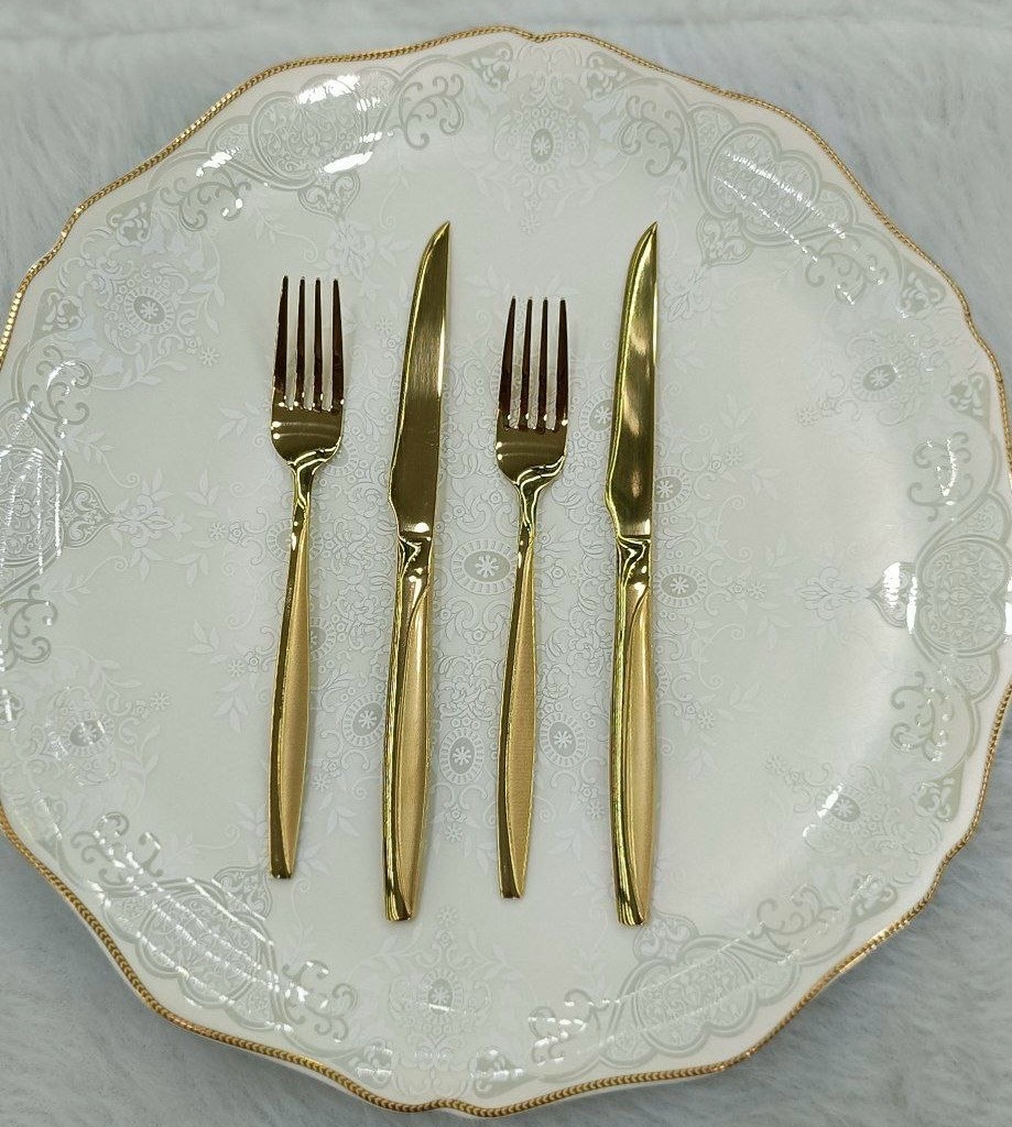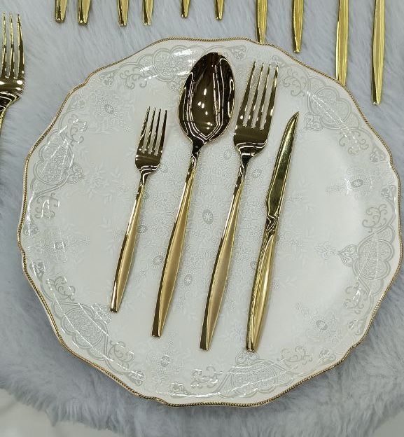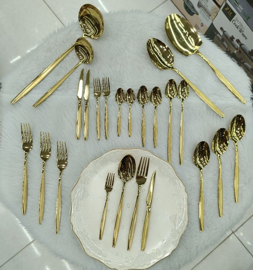 سرویس قاشق چنگال یونیک 24 نفره 120 پارچه مدل ماینز طلایی شامل: