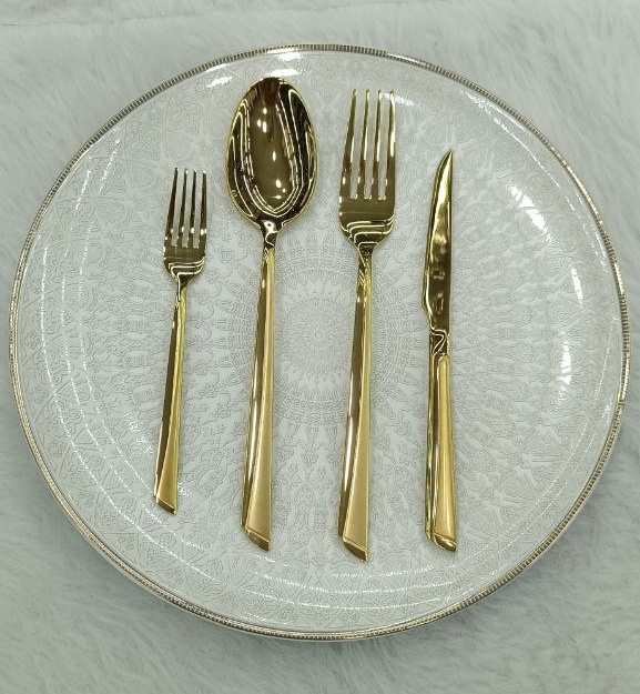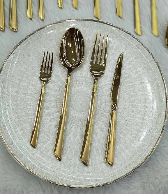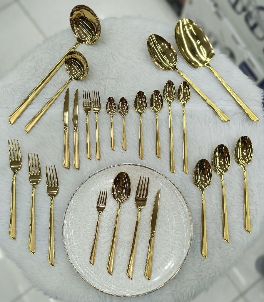 سرویس قاشق چنگال یونیک 24 نفره 120 پارچه مدل ناخنی طلایی شامل: