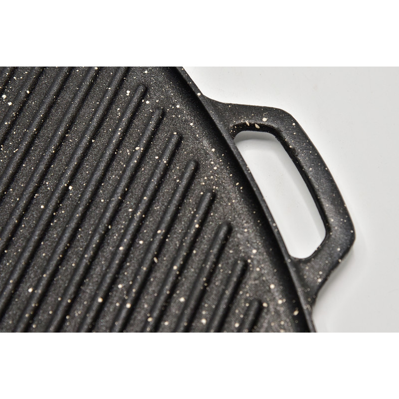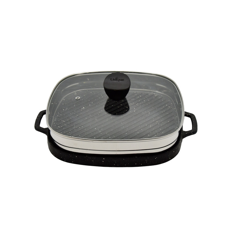 تابه گریل چدن مربع یونیک از جنس چدن مرغوب تهیه شده است..از این تابه برای تهیه انواع غذاهای خوشمزه و سالم با حداقل میزان روغن مصرفی استفاده می شود. این تابه دارای دو عدد دسته از جنس چدن و درب دار می باشد.گریل کردن یکی از روش های پرطرفدار برای تهیه غذا ها است تابه های گریل با ایجاد خطوط روی غذا ها هم آن ها را زیبا تر و هم خوش مزه تر میکند.چدن به خوبی گرما را پخش میکند و باعث میشود همه جای غذا به طور یکنواخت پخته شود. علاوه بر این نقطه ذوب بالایی دارد و میتوانید از آن روی علاوه بر اجاق گاز روی اجاق های هیزمی و صحرایی با خیال راحت استفاده کنید. این تابه با روکشی نچسب پوشیده شده تا استفاده از آن راحت تر باشد. تابه گریل از محصولات زیبا و باکیفیت موجود در لوازم آشپزخانه چشمگیر می باشد.