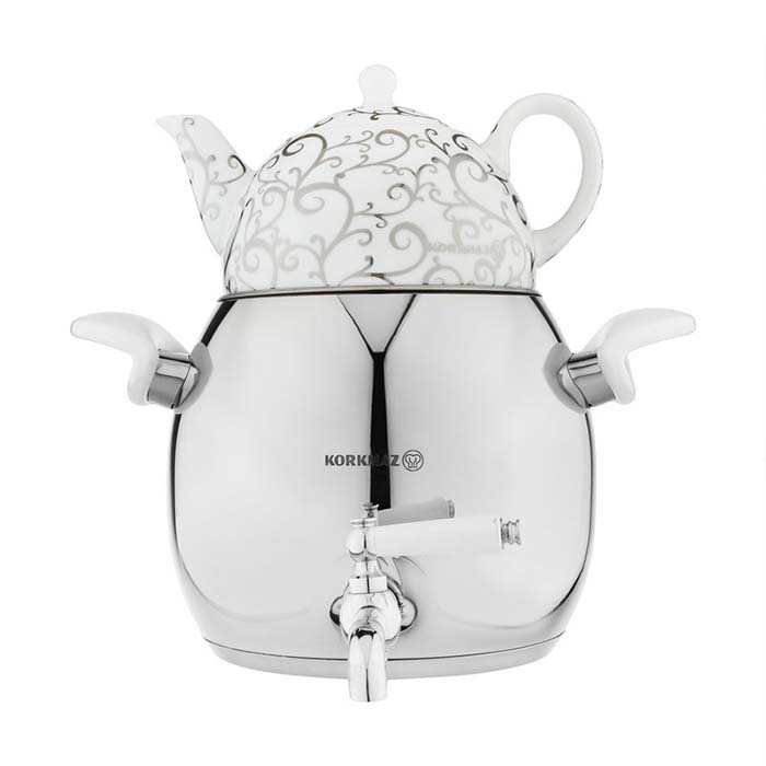 - بدنه از جنس استیل ضد زنگ براق و قوری چینی با طرح خاص