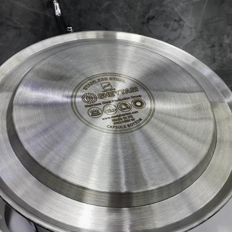 | سایر توضیحات | استیل 18/10 با ضخامت 1 میلی متر - کفه چدنی سه لایه (Capsule Bottom) و دسته های نسوز - دارای نشان استاندارد و گواهیISO 9001 |