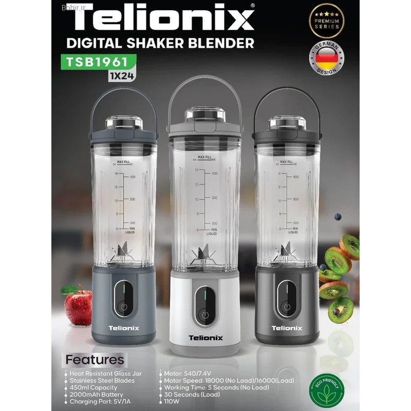 شیکر و اسموتیساز شارژی تلیونیکس مدل TSB1961 یکی از محصولات کاربردی و خوشساخت برند تلیونیکس است که با طراحی آلمانی و عملکرد قابلاعتماد، برای افرادی که به تغذیه سالم و نوشیدنیهای طبیعی اهمیت میدهند، انتخابی بسیار مناسب محسوب میشود. این دستگاه با ظرفیت ۴۵۰ میلیلیتر طراحی شده و امکان تهیهی انواع اسموتی، شیک پروتئینی، آبمیوه طبیعی و نوشیدنیهای ترکیبی را تنها در چند ثانیه فراهم میکند. بدنهی شیکر از مواد باکیفیت، مقاوم در برابر حرارت و دوستدار محیطزیست ساخته شده است و ضمن داشتن ظاهری مدرن و خوشدست، از دوام بالایی نیز برخوردار است. در بخش فنی، این مدل به تیغههای استیل ضدزنگ مجهز شده که قدرت خردکنندگی بالایی دارند و میتوانند یخ و میوههای سفت را بهراحتی پودر و ترکیب کنند. انرژی دستگاه از طریق یک باتری 2000 میلیآمپرساعتی قابل شارژ تأمین میشود که پس از شارژ کامل، امکان استفادهی چندباره را بدون نیاز به اتصال مستقیم به برق فراهم میکند. موتور قدرتمند شیکر نیز در مدت زمان حدود ۳۰ ثانیه نوشیدنی دلخواه شما را آماده میکند.