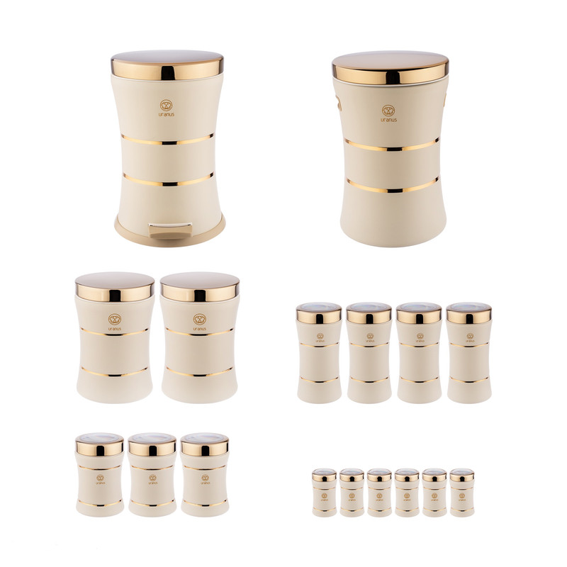 شرکت اورانواس با بکارگیری از دستگاه های بروز توانسته رنگ الکترواستاتیک را بر روی بدنه بسیار مقاوم از ورق گالوانیزه اجرا کند.رنگ کوره ای(الکترواستاتیک) در برابر ضربه،خط و خش و رطوبت محافظت میکند ودر نتیجه باعث افزایش طول عمر محصول می شود. سطل زباله و برنج دارایی تویی پلاستیکی می باشد.نحوه باز و بسته شدن درب زباله به صورت پدالی است می باشد نحوه باز و بسته شدن درب بقیه ظروف به صورت فشاری است.در داخل سطل برنج یک عدد پیمانه برای برداشتن برنج وجود دارد.این مدل از تولیدات این شرکت با درب طلایی روانه بازار شده که جلوه بسیار زیبایی به آشپزخانه شما می دهد و آبکاری آن از نوع pvd می باشد که به هیچ عنوان رنگ آن تغییر نمی کند.