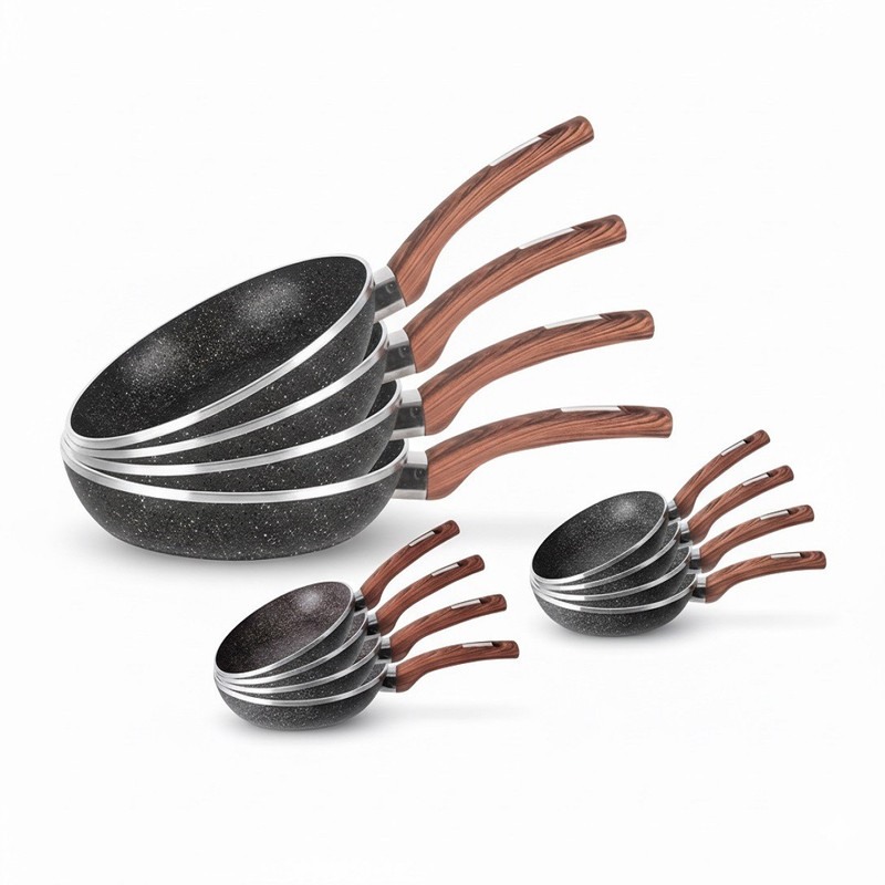 سرویس تابه ۴ پارچه گرانیتی زیو (Zio) مدل Z-8125 سرویس تابه ۴ پارچه زیو (Zio) مدل Z-8125 یک مجموعه کاربردی و باکیفیت برای آشپزخانه شماست که با روکش نانو گرانیت نچسب، پختوپز را به تجربهای سالم، سریع و آسان تبدیل میکند. این سرویس شامل ۴ عدد تابه در سایزهای پرکاربرد ۱۸، ۲۰، ۲۲ و ۲۴ سانتیمتر است که پاسخگوی نیازهای روزمره شما خواهد بود. ویژگیهای اصلی و مزایا: این تابهها دارای پوشش داخلی گرانیتی بسیار مقاوم، نچسب و ضدخش هستند که امکان آشپزی با حداقل روغن را فراهم میکند. بدنه از جنس آلومینیوم با کیفیت بالا ساخته شده که موجب توزیع یکنواخت و سریع حرارت میشود و از سوختن غذا در یک نقطه جلوگیری میکند. دستههای ارگونومیک از جنس باکالیت یا چوب کائوچو، عایق حرارت بوده و کار کردن با تابه را ایمن و راحت میسازد. این سرویس فاقد مواد شیمیایی مضر PFOA است و پخت غذای سالم را تضمین میکند. به دلیل خاصیت نچسب بودن، شستشو بسیار راحت است و حتی در ماشین ظرفشویی نیز قابل شستشو است. این محصول با طراحی زیبا و مدرن، قابل استفاده بر روی انواع اجاق گاز (گازی، برقی، سرامیکی) است.مشخصات فنی در یک نگاه: برند: زیو (ZIO) | مدل: Z-8125 | تعداد پارچه: ۴ پارچه | جنس روکش داخلی: گرانیت نچسب | جنس بدنه: آلومینیوم مقاوم | قابلیت استفاده: انواع اجاق گاز | قابلیت شستوشو: دستی و ماشین ظرفشویی | فاقد PFOA: بله.سرویس تابه زیو مدل Z-8125، انتخابی ایدهآل برای یک آشپزی حرفهای و سالم در منزل شماست.