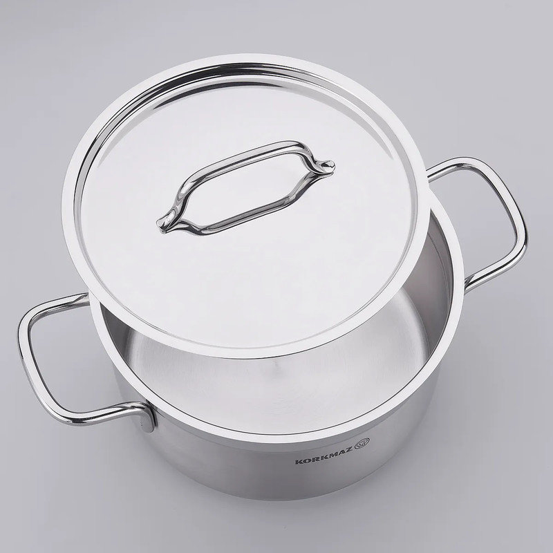 قابلمه استیل کرکماز مدل A1017 از جنس استیل استیل ضد زنگ کروم نیکل (18/10) و ساخت کشور ترکیه می باشد. سایز این قابلمه کرکماز 18 سانتی متر بوده که با ارتفاع 10 سانتی متری و حجم مقدار 2.5 لیتر ظرفیت دارد. قابلمه دارای کفه کپسولی سه لایه تریپلکس و دستگیره های استیل ضخیم و مقاوم بوده که دست را نمی سوزاند. قابلمه کرکماز استیل 1017 دارای پایه سیستم خورشیدی بوده و به لطف انتقال گرمای فراوان و یکدستی که دارد در زمان و انرژی شما صرفه جویی می شود. در طول فرایند تولید این قابلمه ظرافت زیادی بکار رفنته و ظاهری بسیار زیبا دارد. کفه این قابلمه استیل کرکماز مدل A1017 دارای خاصیت القایی ( اینداکشن) بوده و بر روی انواع اجاف ها از جمله اجاق های القایی قابل استفاده بوده و بیشترین بازدهی را بر روی این نوع اجاق ها دارد. قابلمه استیل کرکماز 1017 قابلیت شستشو در ماشین ظرف شویی را داشته و با توجه به شکل حالت تخت درب قابلمه، فضای کم و بهینه ای را در ماشین ظرف شویی به خود اختصاص می دهد. این محصول بدنه و در آن از جنس استیل ضد زنگ 18/10 کروم / نیکل (18/10) و ساخت کشور ترکیه می باشد.