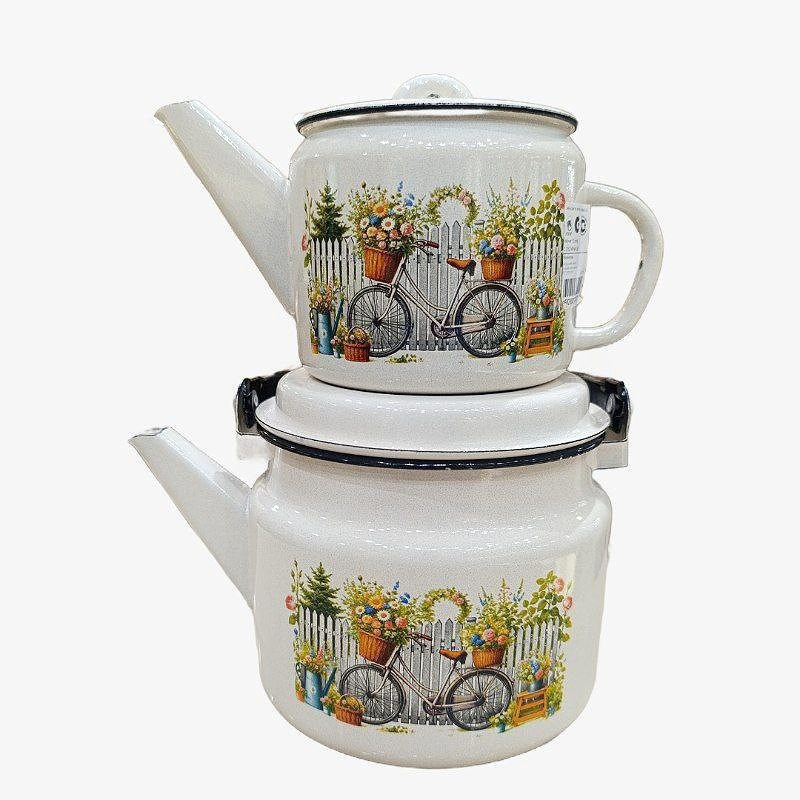 ست کتری و قوری طرح دوچرخه مدل FHUUUY گنجایش کتری 2 لیتر گنجایش قوری 1 لیتر