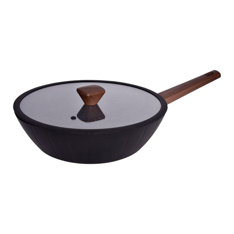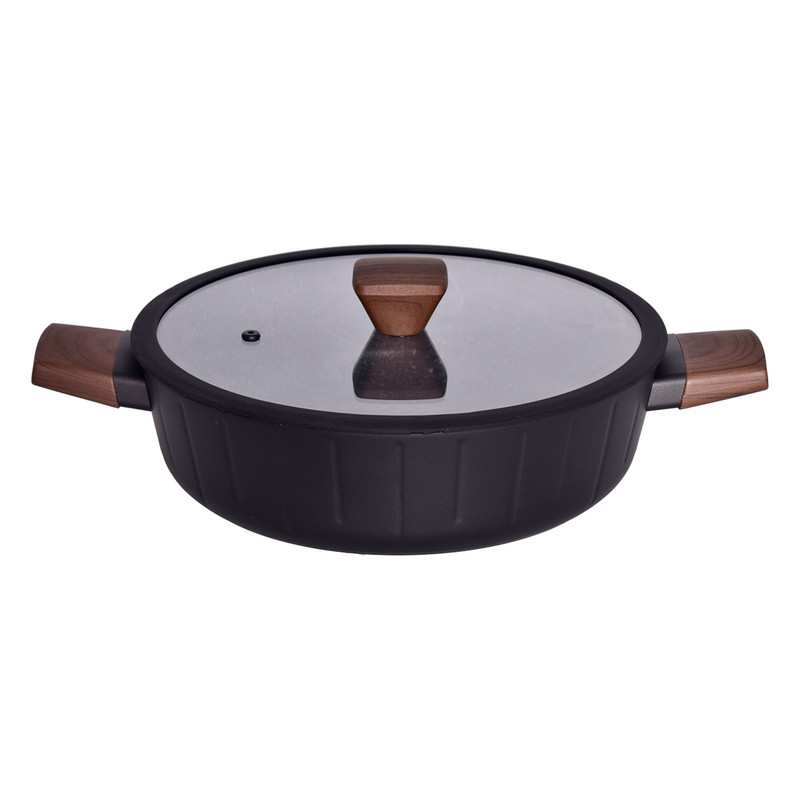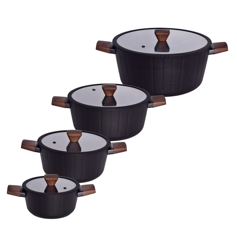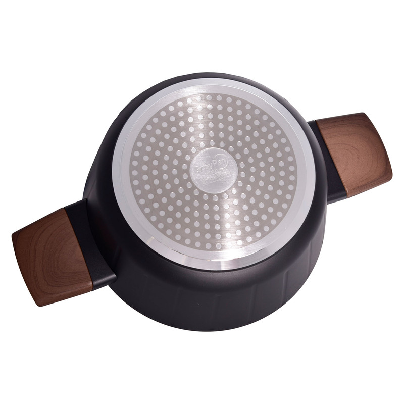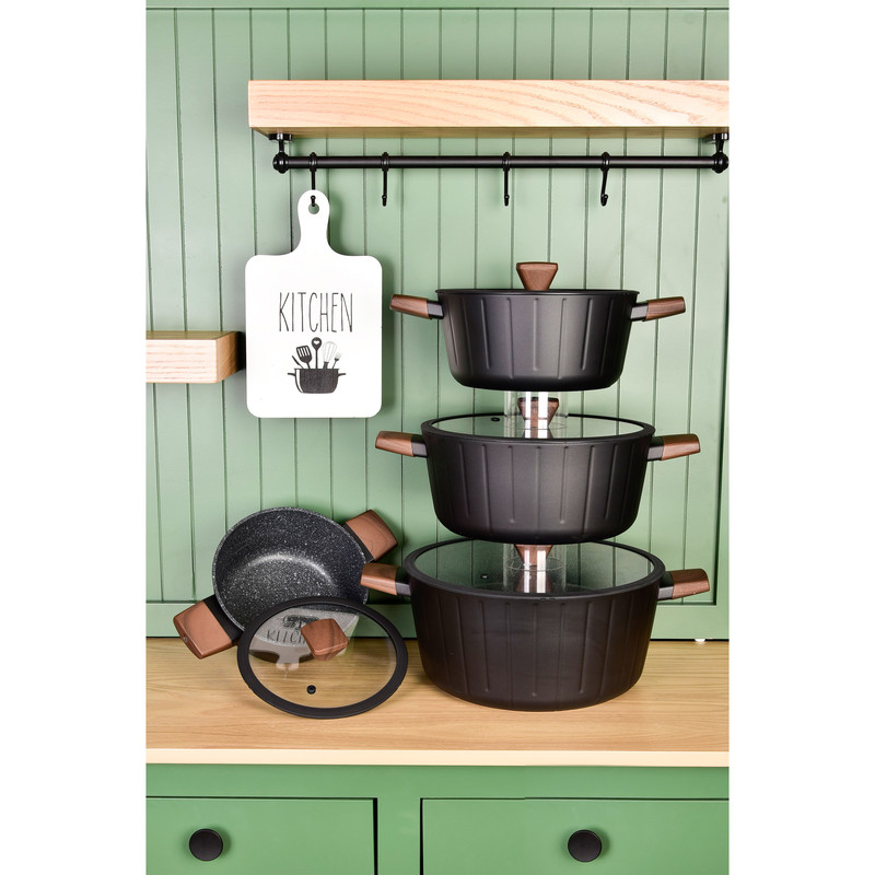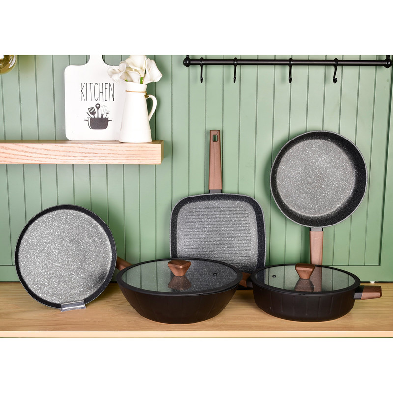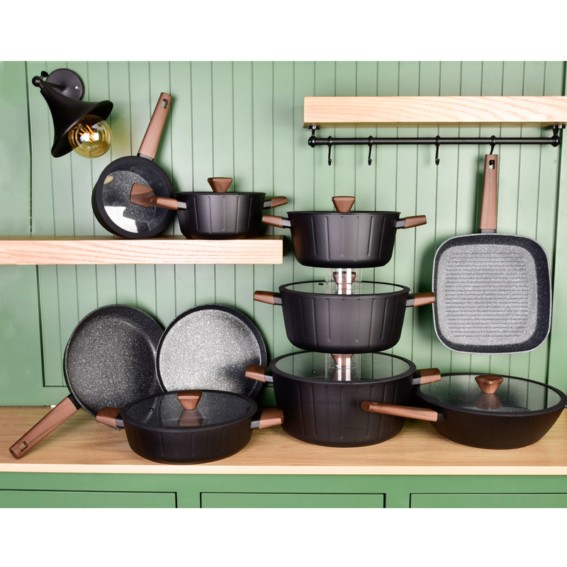 سرویس قابلمه و تابه 17 پارچه گرانیتی گری پن مدل دسته چوبی