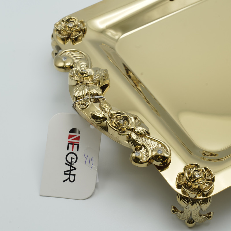 سینی پذیرایی یکی از پر کاربردترین وسایل خانه و آشپزخانه به حساب می آید.سینی پذیرایی نگار طرح گلستان در سایز متوسط دارای ورق تمام استیل , ضد زنگ و با ضخامت بالا می باشد. سینی پذیرایی نگار با طراحی بسیار زیبا زینت بخش مجالس شماست.