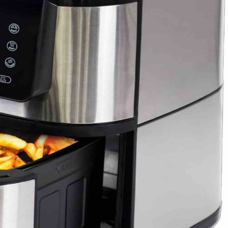 این سرخکن پیشرفته با فناوری Zano Rapid Air، امکان پخت غذاهای سالمتر و کمچربتر را فراهم میکند. نمایشگر دیجیتال بزرگ ۱۰ اینچی همراه با عملکرد لمسی، کاربری بسیار آسانی را برای شما به همراه دارد. توان مصرفی این دستگاه شامل المنت بالایی با قدرت ۱۵۰۰ وات و المنت پایینی با قدرت ۷۰۰ وات است که در مجموع ۲۲۰۰ وات توان حرارتی ایجاد میکند. ظرفیت ۸ لیتری آن، مناسب برای خانوادههای پرجمعیت و مهمانیهاست. این محصول مجهز به ۱۰ برنامه پخت متنوع، قابلیت یخزدایی، تنظیم دستی دما و زمان، و نشانگر آماده به پخت میباشد. همچنین، سیستم قطعکن خودکار ایمنی بیشتری هنگام استفاده فراهم میکند. از نظر طراحی، بدنه از پلاستیک مقاوم و استیل ضدزنگ ساخته شده و پوشش داخلی آن ورق استیل گالوانیزه است. فن چرخشی تمام استیل همراه با المنت مارپیچی، پخت یکنواخت غذا را تضمین میکند. کاسه داخلی با روکش تفلون نچسب و سبد دوگانه، شستوشو و استفاده را سادهتر کرده است. پایههای ضدلغزش نیز موجب ثبات بیشتر دستگاه روی سطح میشوند