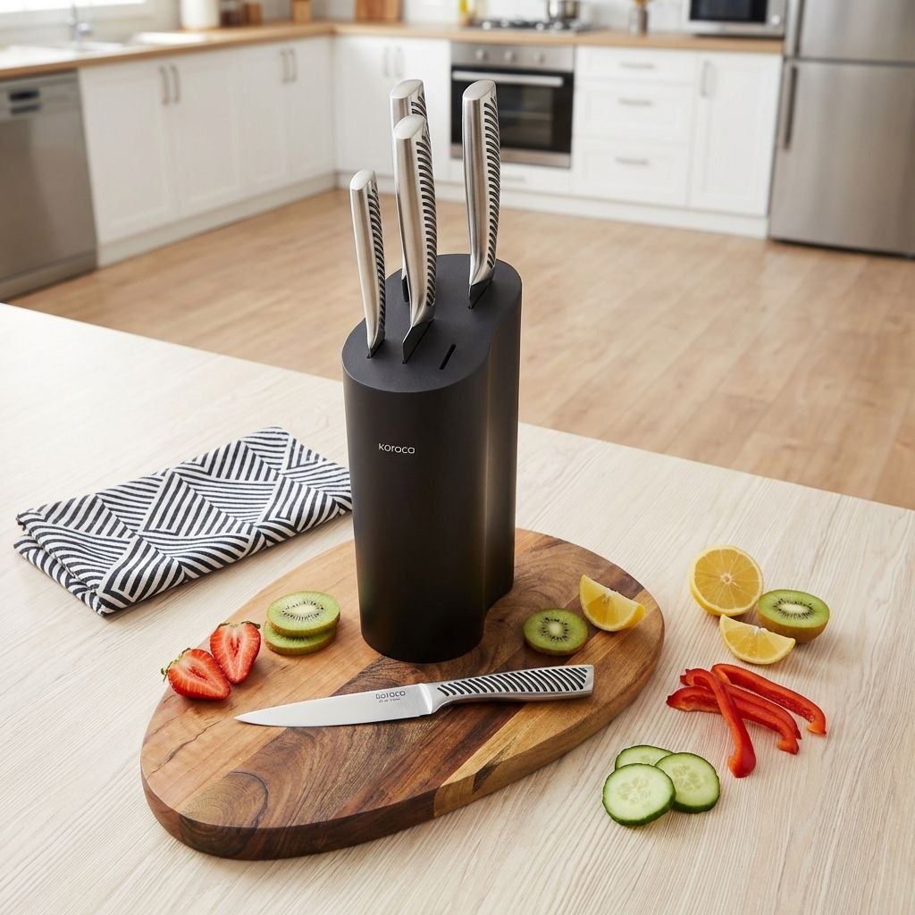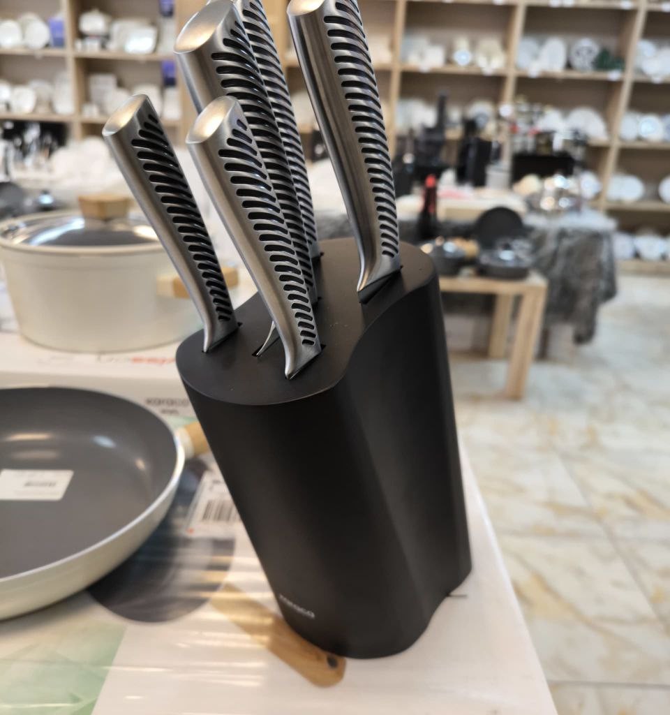 _دستههای چاقوها به گونهای طراحی شدهاند(طراحی ارگونومیک) که به راحتی در دست جای میگیرند و استفاده از آنها را بسیار راحت و لذتبخش میکنند.طراحی مینیمالیستی و مدرن این ست، آن را به یک انتخاب عالی برای آشپزخانههای مدرن تبدیل کرده است