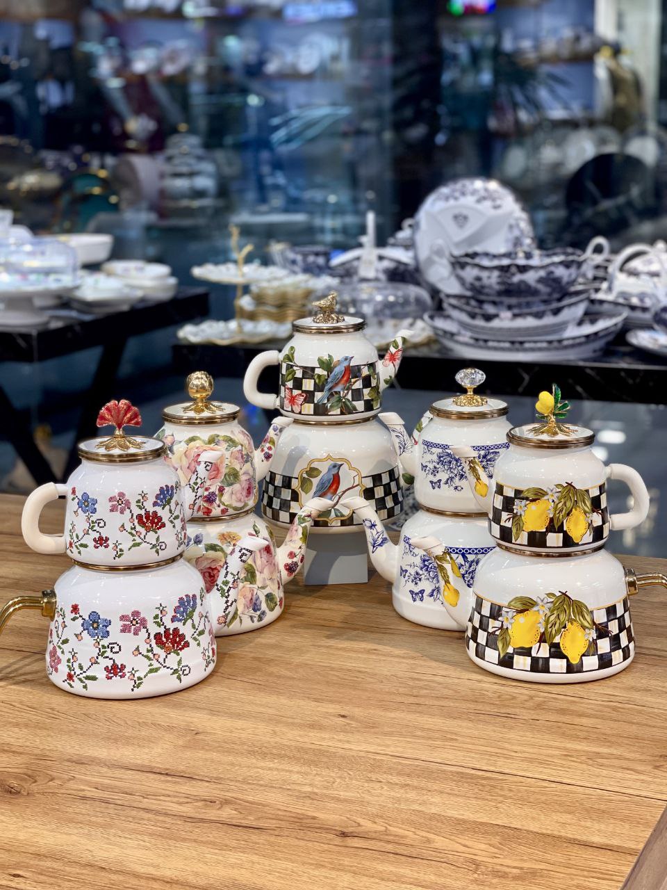 کتری قوری لعابی رنگی و فانتزی برای دکور مدرن، و مدلهای گرانشی با روکش نچسب.